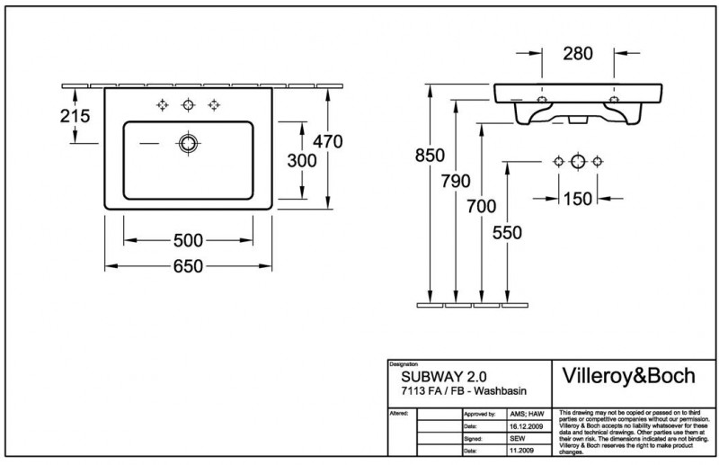 Umywalka meblowa Subway 2.0, z otworem na baterię i przelewem.