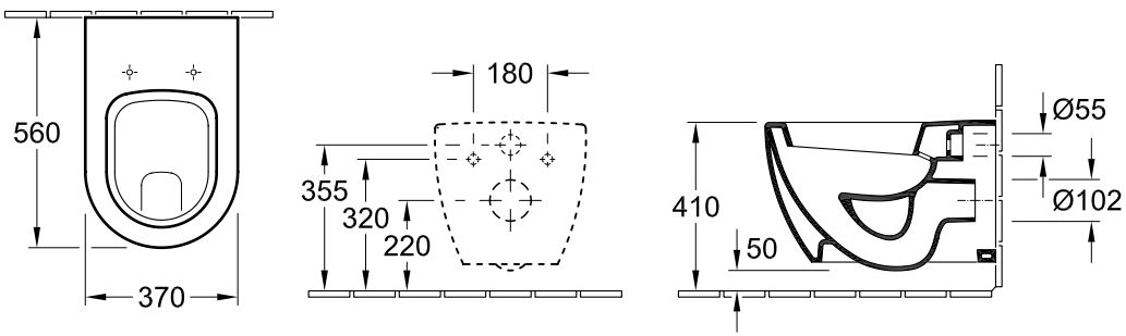 Model wiszący, odpływ poziomy, dołączony zestaw montażowy do mocowań ukrytych.