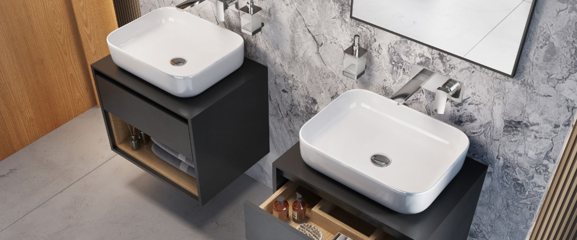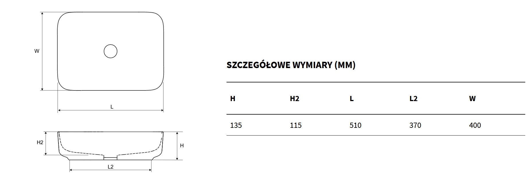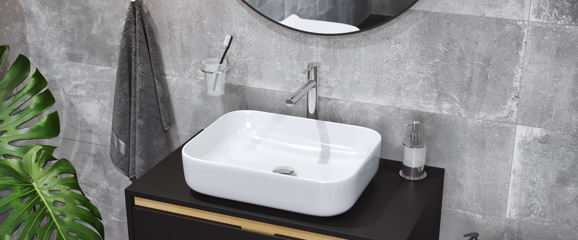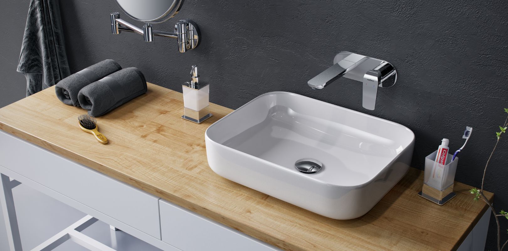 Umywalka bez przelewu i otworu na baterie, do postawienia na blat,