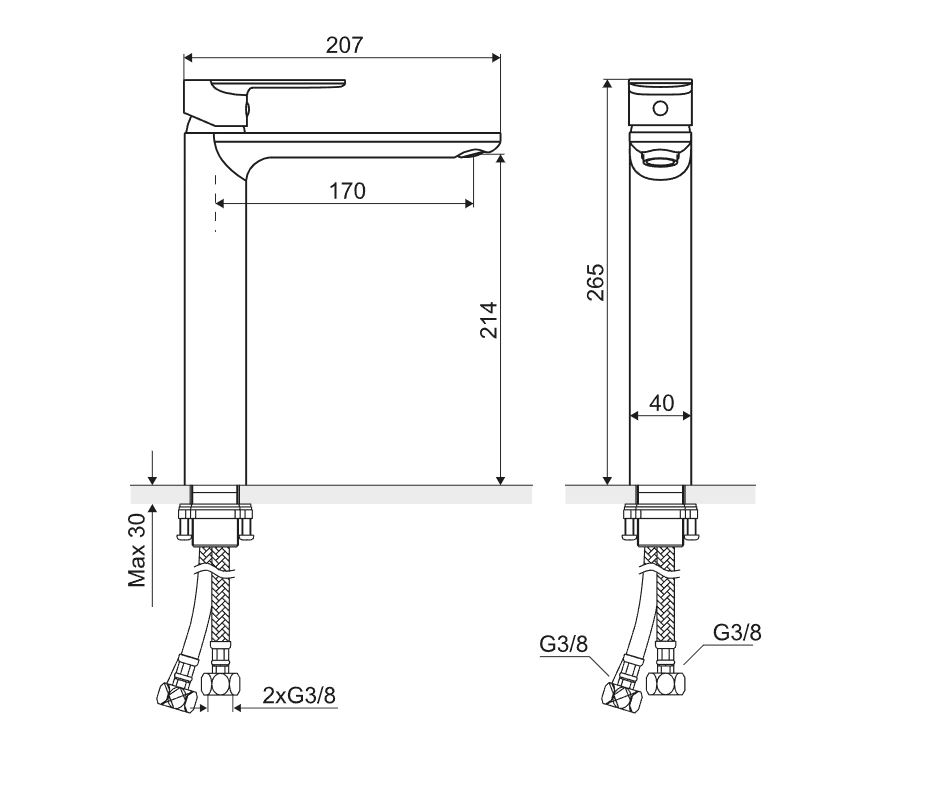 Actima Glad Bateria umywalkowa wysoka
