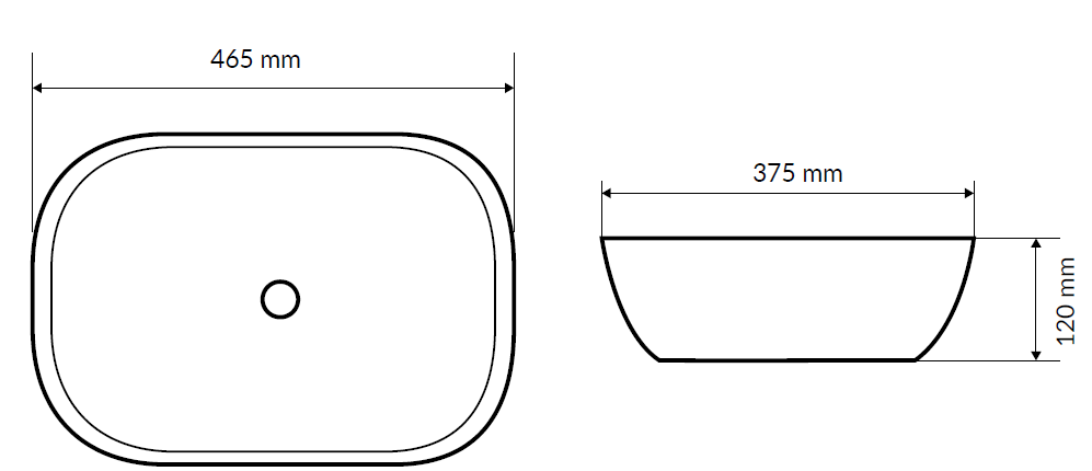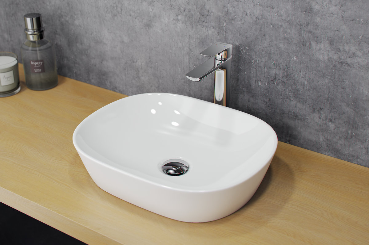 Umywalka bez przelewu i otworu na baterie, do postawienia na blat,