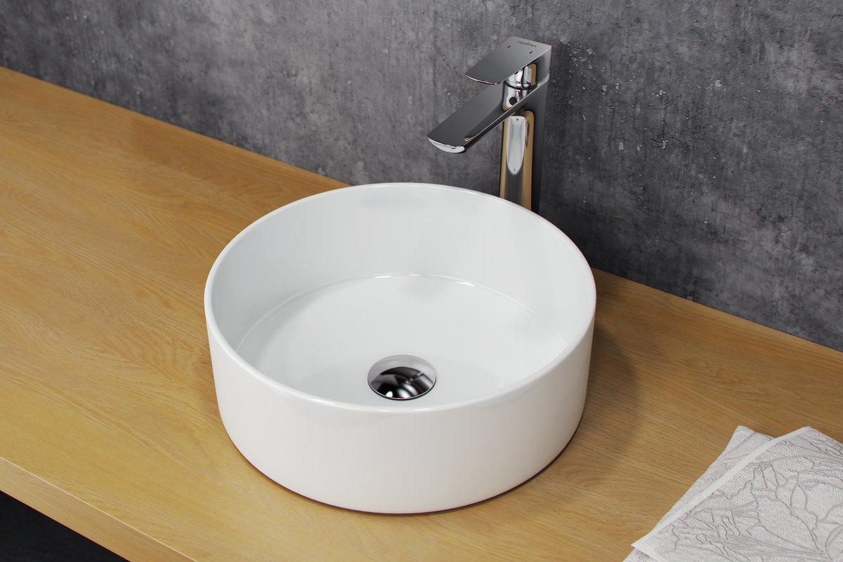 Umywalka bez przelewu i otworu na baterie, do postawienia na blat,