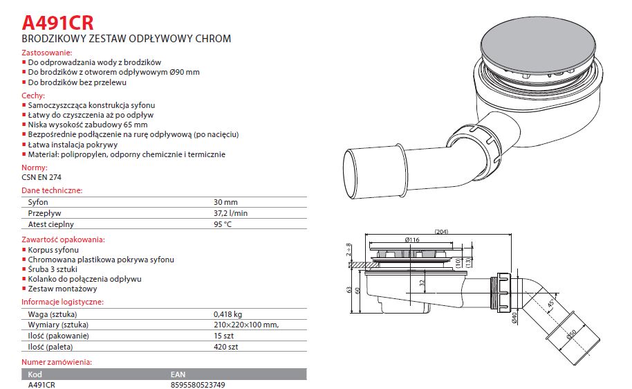 Kompletny syfon renomowanego producenta ALCAPLAST