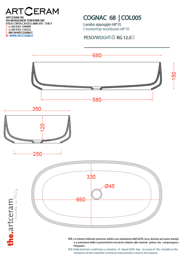 Umywalka włoskiego producenta ARTCERAM z serii COGNAC