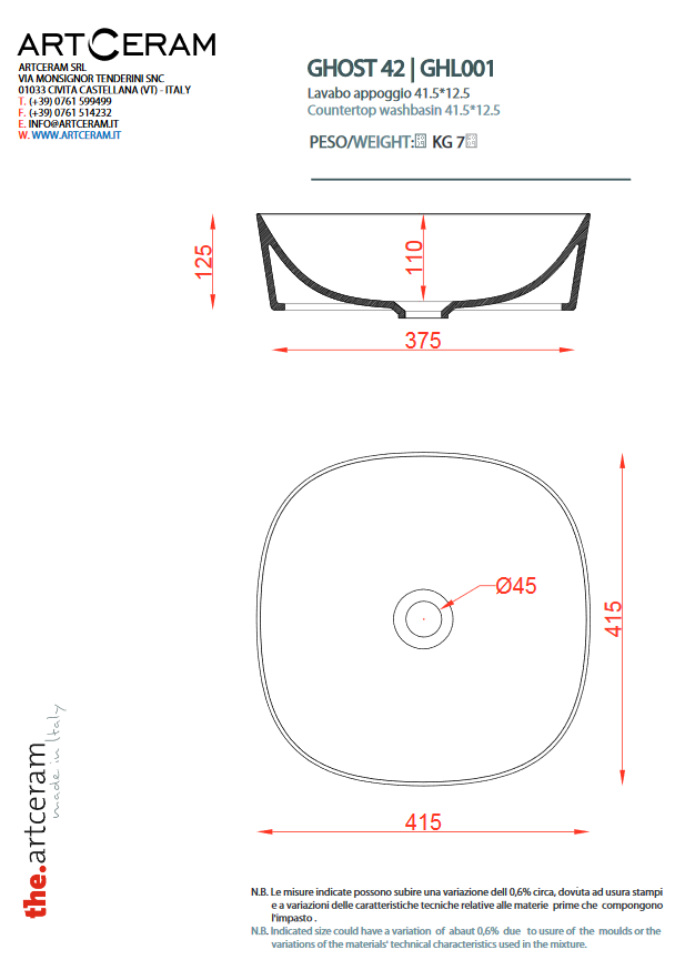 Umywalka włoskiego producenta ARTCERAM z serii GHOST