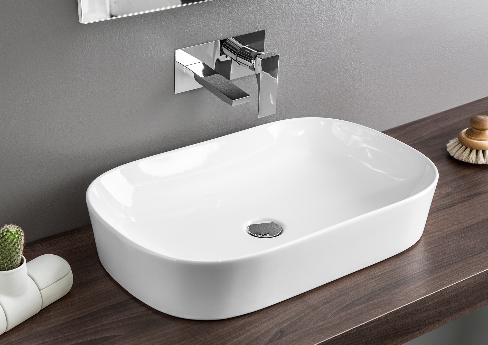 Cienki rant, stawiana na blat cermika kolor biały połysk,
