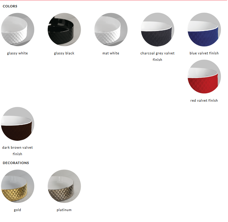 Cienki rant, dekor na zewnątrz umywalki, stawiana na blat ceramika kolor biały połysk,