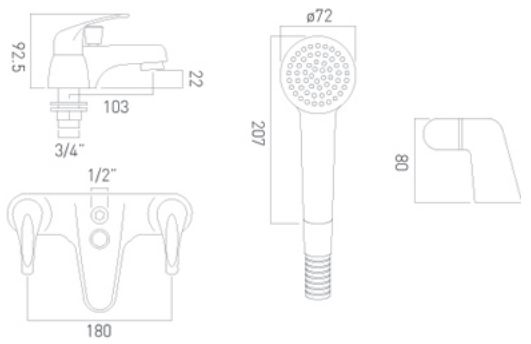 Vado Matrix bateria wannowa dwuuchwytowa dwuotworowa z zestawem prysznicowym chrom.