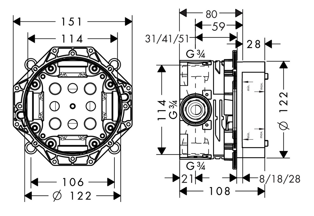 Zestaw podtynkowy do kompletowania z wybranymi modelami baterii podtynkowych Axor.