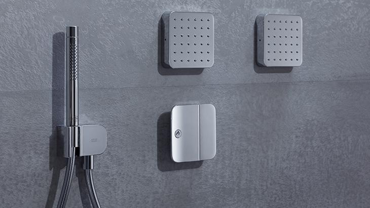 Dzięki modułowi termostatowemu Axor One, który jest rozwiązaniem typu "wszystko w jednym", wprowadzisz do swojej strefy prysznica manifest suwerennej formy. Niczym monolit, Axor One emanuje majestatyczną formą dzięki swojej płaskiej formie, łagodnym krągłościom i wielkoformatowym proporcjom. Wszystkie funkcje zostały sprowadzone do jednego centralnego elementu obsługi, który umożliwia sterowanie prysznicami przez proste dotknięcie odpowiednich klawiszy funkcyjnych.