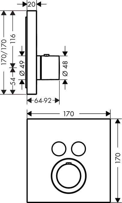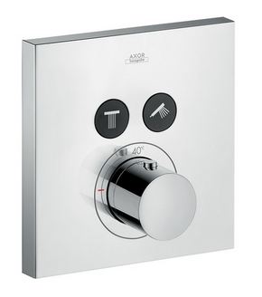 Teraz niewielki przycisk czyni kąpiel pod prysznicem jeszcze wygodniejszą. Dzięki technologii Select od Hansgrohe możesz sterować prysznicem za dotknięciem przycisku. Termostaty Axor ShoweSelect są wyposażone w niewielkie przyciski - tam, gdzie dotychczas sterowanie odbywało się przez obrót pokrętła, teraz wystarczy kliknięcie przycisku. Za pomocą przycisków Select możesz przełączać pomiędzy różnymi odbiornikami prysznica, np. główką i głowicą prysznicową. Dzięki temu sterowanie prysznicem jest bardzo intuicyjne.