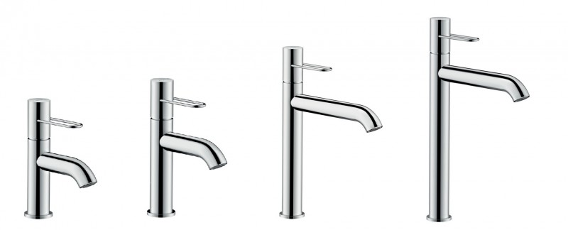 Kolekcja AXOR Uno obejmuje produkty dla umywalki, prysznica i wanny w trzech wariantach wzornictwa: z ergonomicznym uchwytem pałąkowym, uchwytem purystycznym i radykalnie zredukowanym uchwytem Zero.