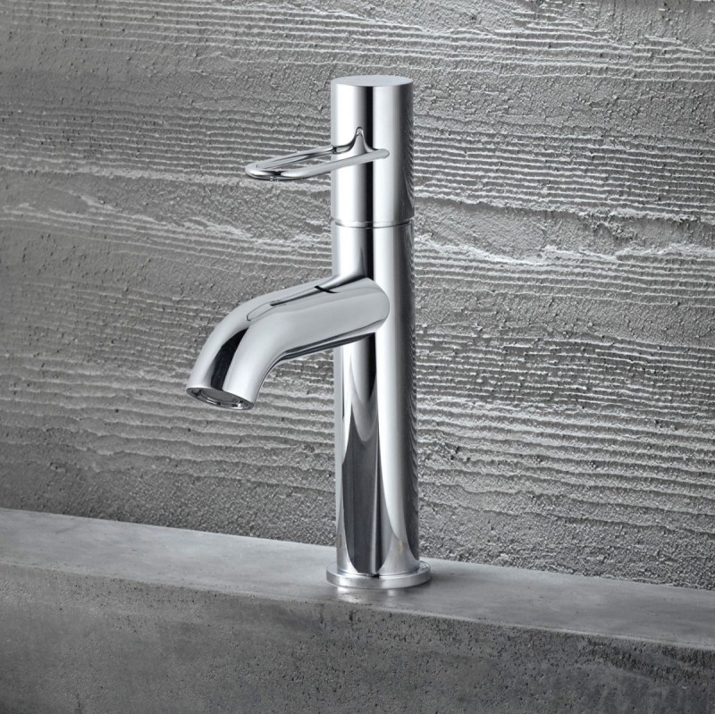 Stalowa rura - ulubiony materiał purystów i zarazem najbardziej pierwotny sposób transportu wody - staje się tutaj podstawową formą wzorniczą: cylindrycznie geometry.