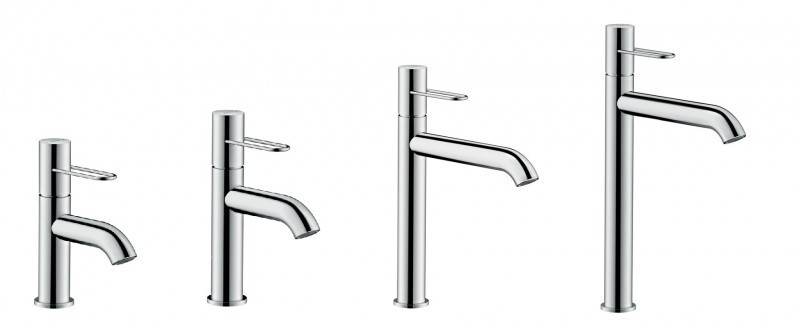 Kolekcja AXOR Uno obejmuje produkty dla umywalki, prysznica i wanny w trzech wariantach wzornictwa: z ergonomicznym uchwytem pałąkowym, uchwytem purystycznym i radykalnie zredukowanym uchwytem Zero.