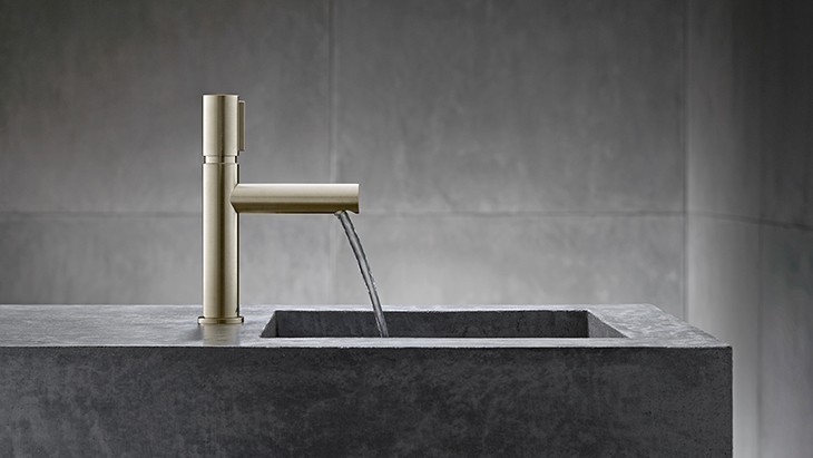 Stalowa rura - ulubiony materiał purystów i zarazem najbardziej pierwotny sposób transportu wody - staje się tutaj podstawową formą wzorniczą: cylindrycznie geometry.