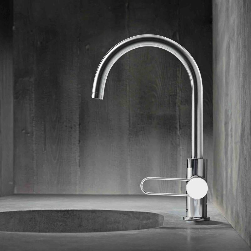 Stalowa rura - ulubiony materiał purystów i zarazem najbardziej pierwotny sposób transportu wody - staje się tutaj podstawową formą wzorniczą: cylindrycznie geometry.
