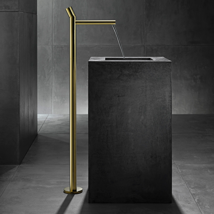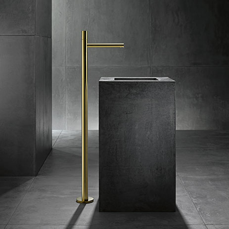 Stalowa rura - ulubiony materiał purystów i zarazem najbardziej pierwotny sposób transportu wody - staje się tutaj podstawową formą wzorniczą: cylindrycznie geometry.