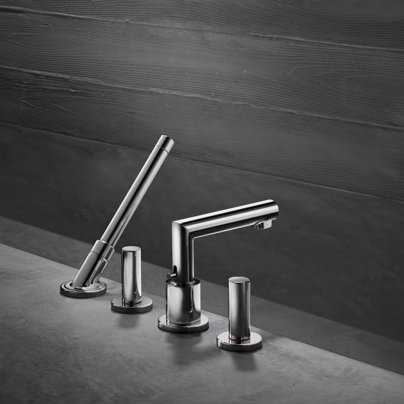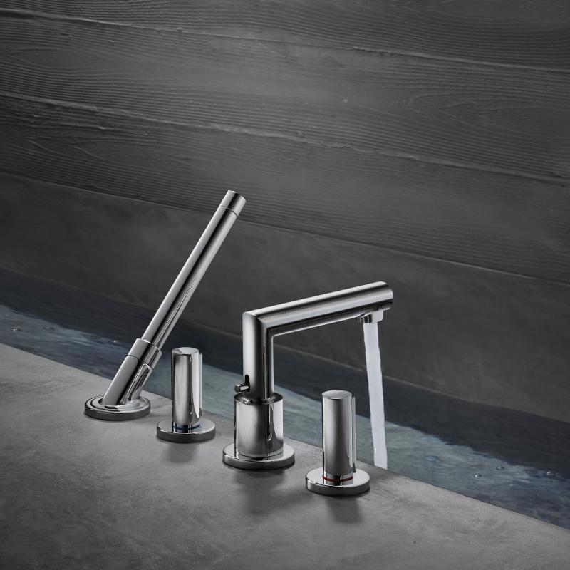 Stalowa rura - ulubiony materiał purystów i zarazem najbardziej pierwotny sposób transportu wody - staje się tutaj podstawową formą wzorniczą: cylindrycznie geometry.