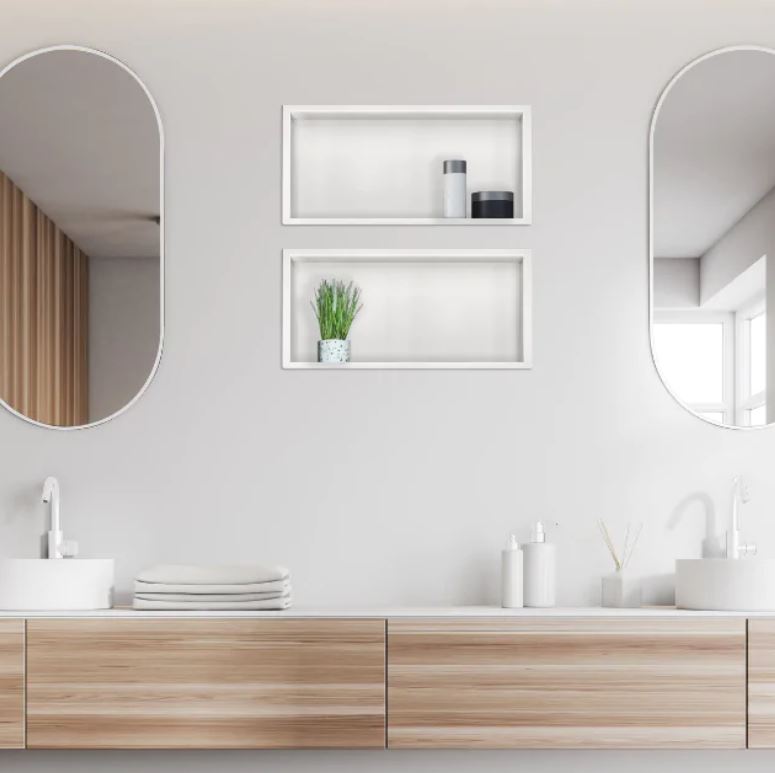 Wodoszczelne półki wnękowe to doskonała alternatywa dla półek wnękowych wykonanych z płyt gipsowo-kartonowych. Kołnierz otaczający WALL-BOX  jest dodatkową ozdobą, ale także ukrywa przycięte krawędzie glazury i stanowi elegancką ramę. Wodoszczelność półek czyni je idealnymi do umieszczenia pod prysznicem. Dzięki temu zyskasz dodatkowe miejsce na kosmetyki i inne akcesoria łazienkowe.