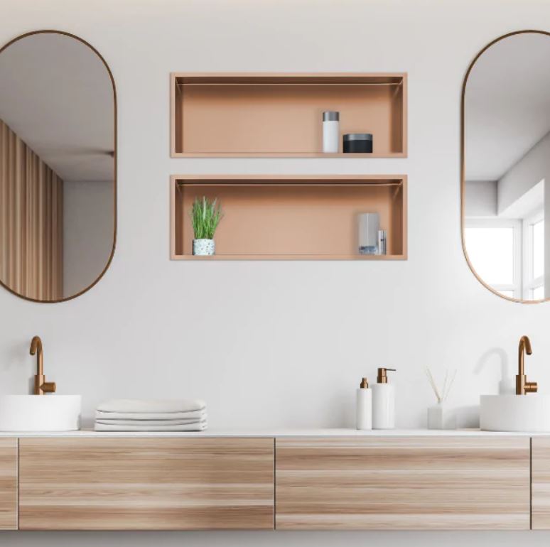 Wodoszczelne półki wnękowe to doskonała alternatywa dla półek wnękowych wykonanych z płyt gipsowo-kartonowych. Kołnierz otaczający WALL-BOX jest dodatkową ozdobą, ale także ukrywa przycięte krawędzie glazury i stanowi elegancką ramę. Wodoszczelność półek czyni je idealnymi do umieszczenia pod prysznicem. Dzięki temu zyskasz dodatkowe miejsce na kosmetyki i inne akcesoria łazienkowe.