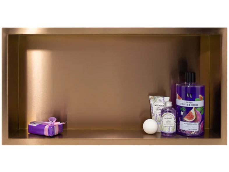 Wodoszczelne półki wnękowe to doskonała alternatywa dla półek wnękowych wykonanych z płyt gipsowo-kartonowych. Kołnierz otaczający WALL-BOX jest dodatkową ozdobą, ale także ukrywa przycięte krawędzie glazury i stanowi elegancką ramę. Wodoszczelność półek czyni je idealnymi do umieszczenia pod prysznicem. Dzięki temu zyskasz dodatkowe miejsce na kosmetyki i inne akcesoria łazienkowe.