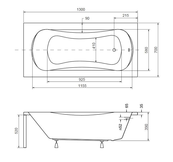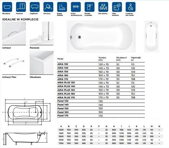 Model Aria PLUS wyposażony w dwa metalowe uchwyty wannowe.
