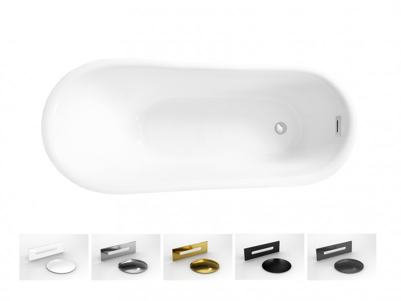 Besco Calima wanna wolnostojąca 170x74 cm akryl biały + syfon grafit WAS-170-CGR