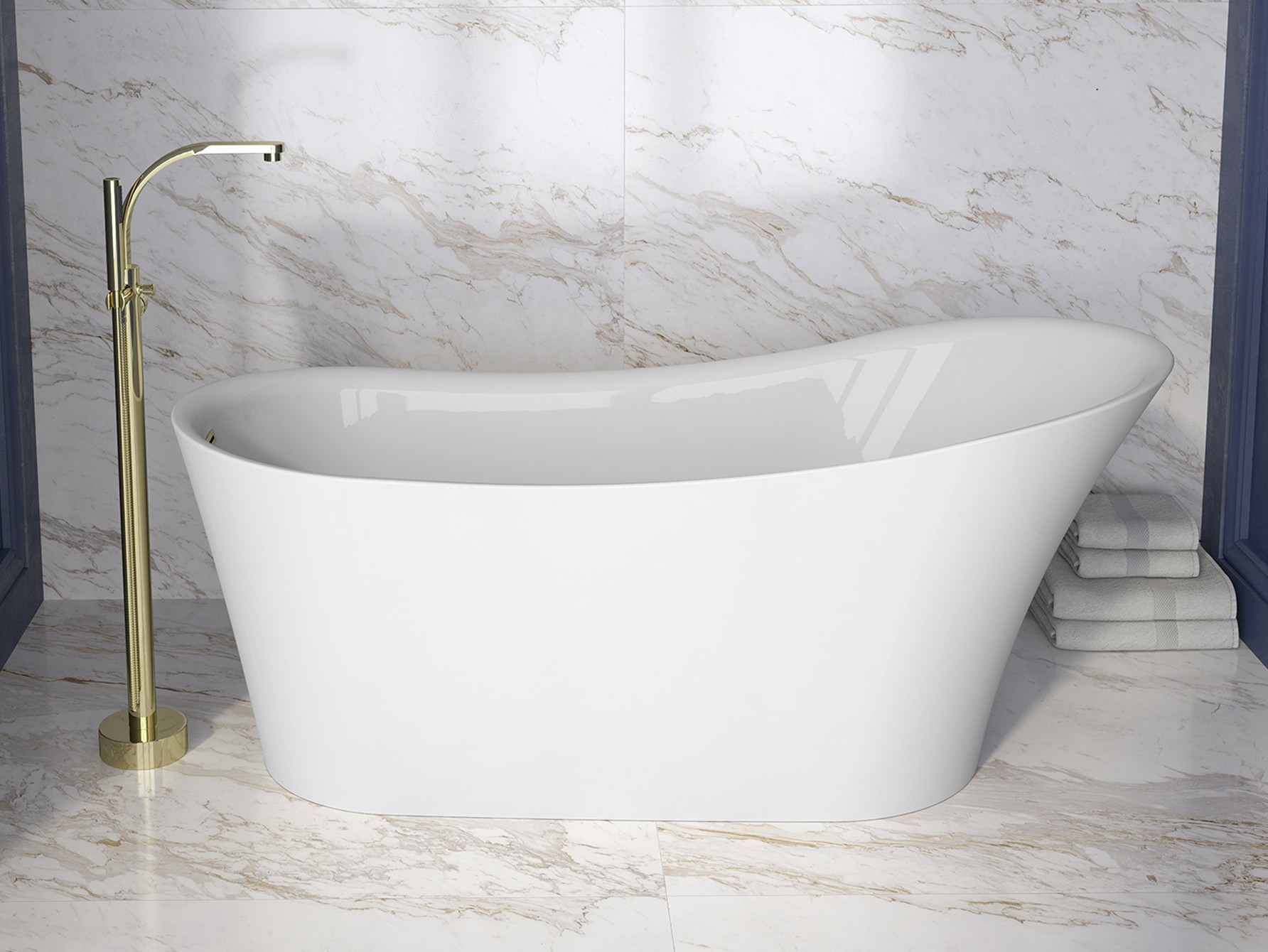 Besco Calima wanna wolnostojąca 170x74 cm akryl biały + syfon złoty WAS-170-CZL