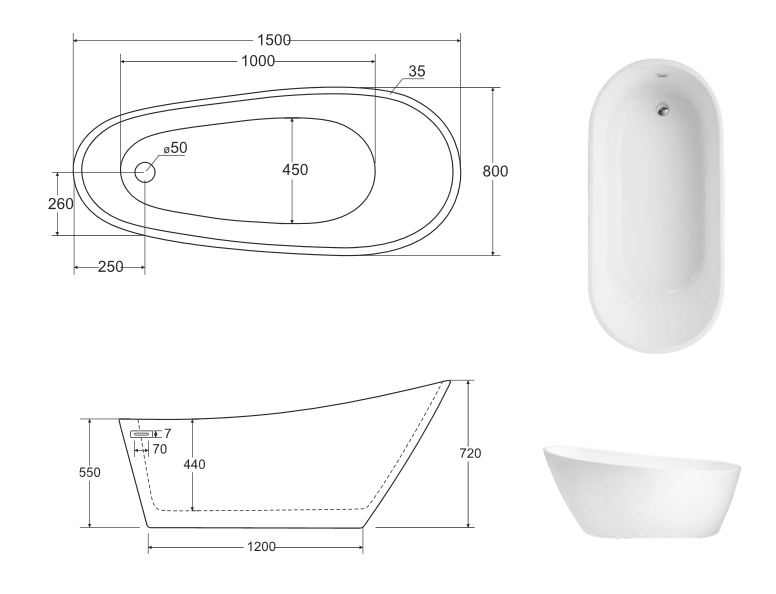 Odpływ klik-klak w wykończeniu chrom w cenie wanny w wykończeniu białym.
