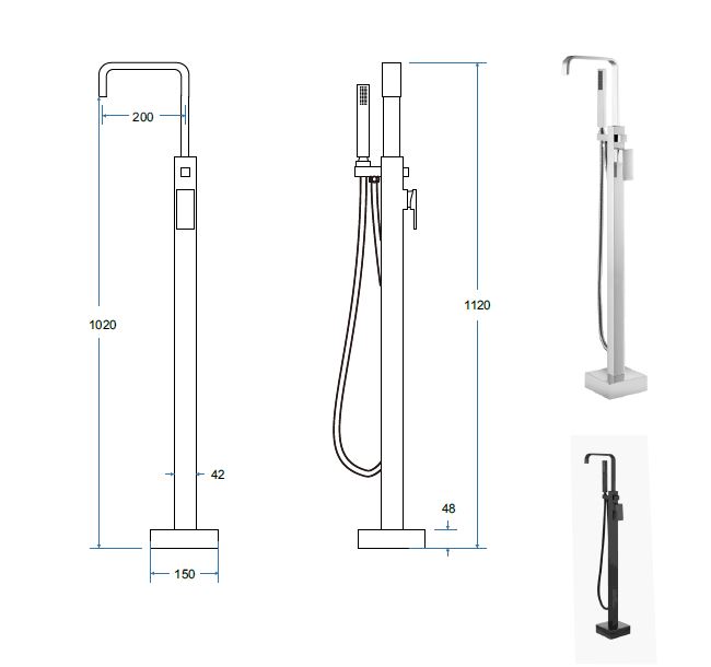 Bateria podłogowa do kompletowania z wanną wolnostojącą.