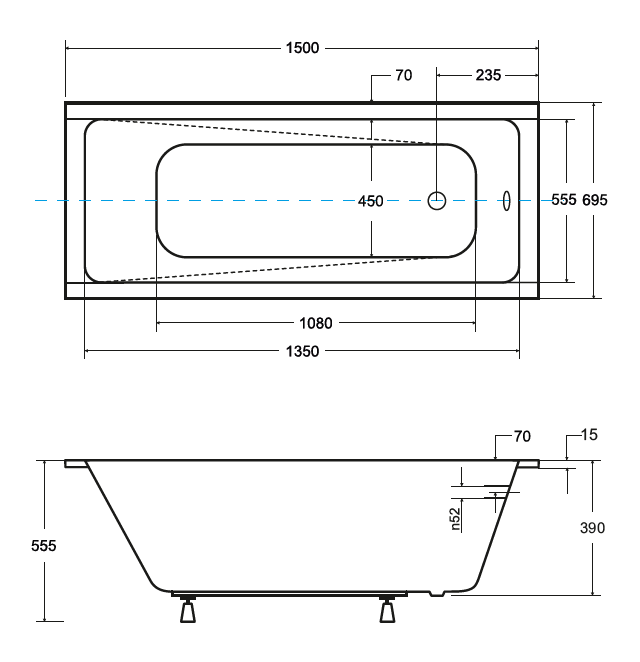 Wanna prostokątna o pięknych kwadratowych kształtach z niskim rantem 15 mm. Wyjątkowo atrakcyjna.