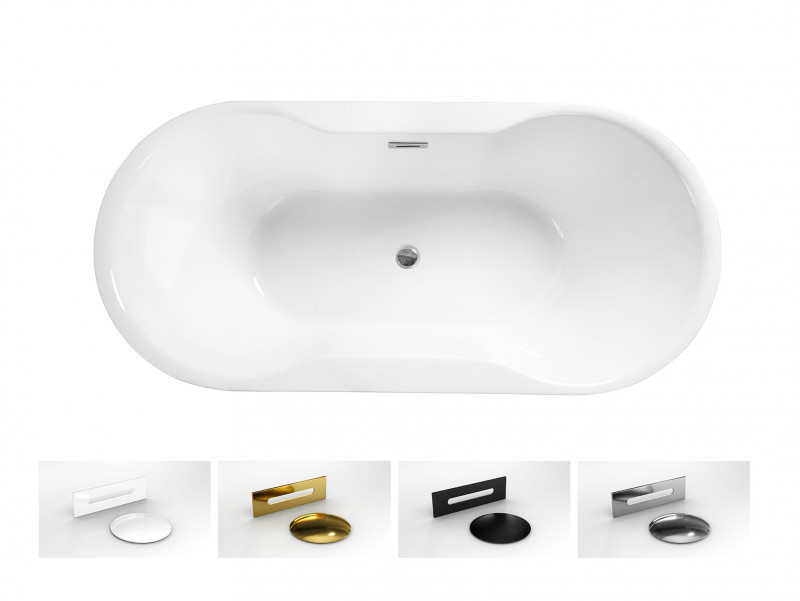 Besco Navia wanna wolnostojąca 150x80 cm akryl biały + syfon złoty WAS-150-NZL