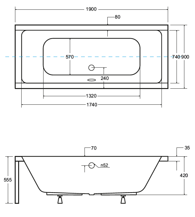 Wanna prostokątna o pięknych kwadratowych kształtach. Wyjątkowo atrakcyjna.