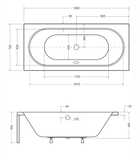 Wanna prostokątna o zaokroglonym wnętrzu.