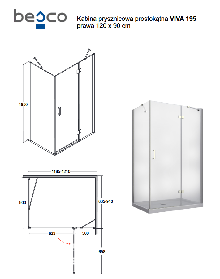BESCO Viva 195 Kabina prostokątna