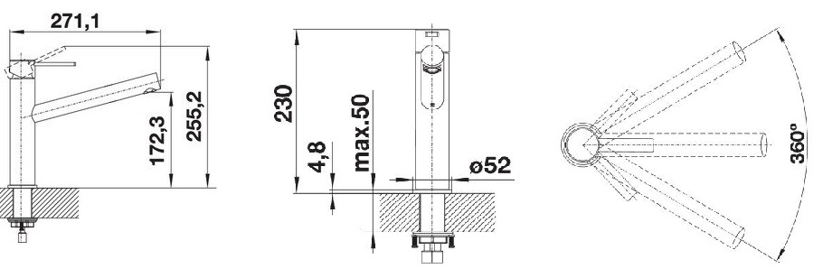 - Elastyczne węże przyłączeniowe o długości 450 mm i nakrętka 3/8'' umożliwiają szybki i pewny montaż
