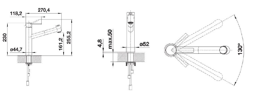 - Elastyczne węże przyłączeniowe o długości 450 mm i nakrętka 3/8'' umożliwiają szybki i pewny montaż