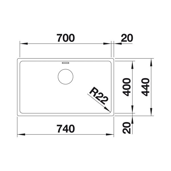 Blanco Andano 700 U zlewozmywak komora podwieszana z korkiem InFino stal szlachetna gładka 522971