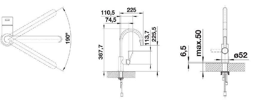 - Kąt obrotu wylewki 190°