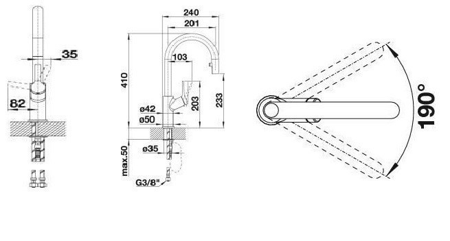 - Elastyczne węże przyłączeniowe o długości 450 mm i nakrętka 3/8'' umożliwiają szybki i pewny montaż