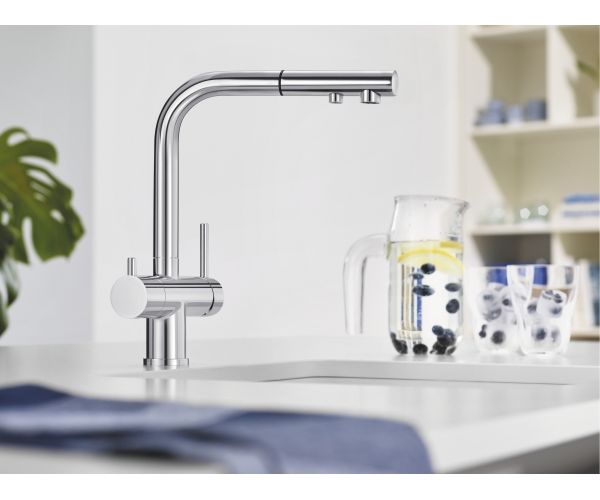 - z obrotową, wyciąganą wylewką oraz stałym strumieniem wody