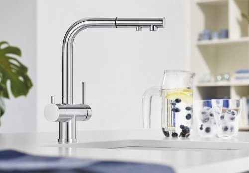 - z obrotową, wyciąganą wylewką oraz stałym strumieniem wody