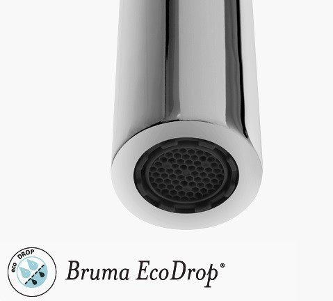Bruma Air EcoDrop: wszystkie baterie są wyposażone w systemy kontroli przepływu, które, mieszając powietrze z wodą, przekazują takie samo odczucie komfortu jak duży przepływ, ale przy użyciu mniejszej ilości wody.