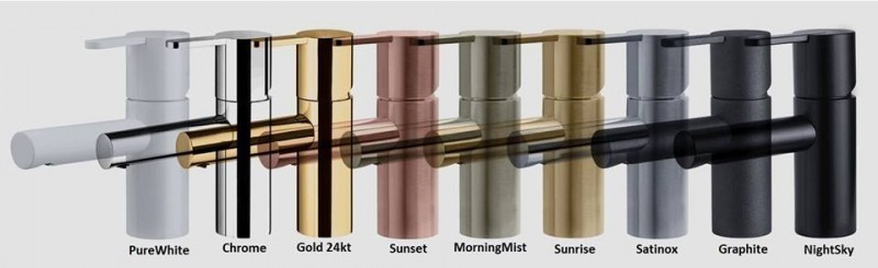 Kolekcja armatury Bruma dostępna jest teraz w szerokiej gamie ultranowoczesnych kolorów i powłok. W ofercie obok klasycznego chromu znajdziemy także złoto, złoto różowe, nikiel, grafit, biel oraz czerń w wykończeniu błyszczącym lub szczotkowanym.