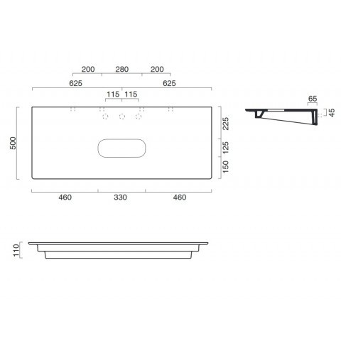 Blat ceramiczny bez otworu pod baterię odpowiedni do montażu umywalki na środku.