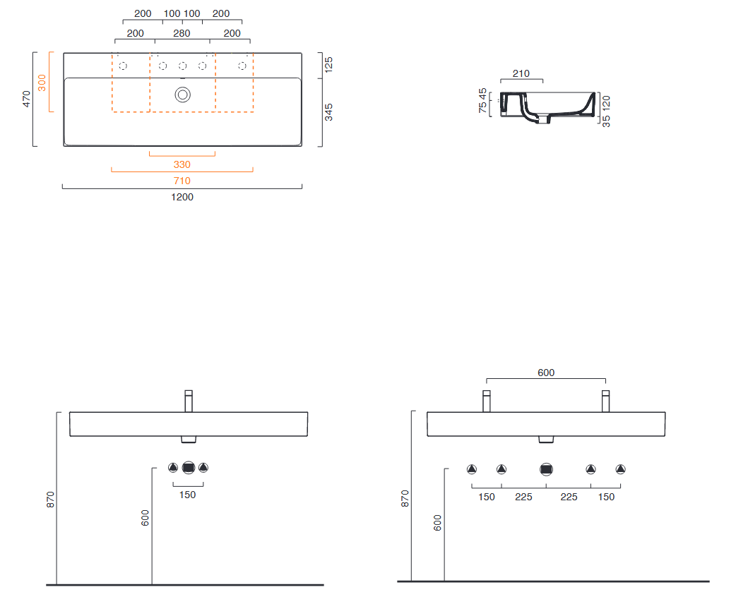 Wszystkie umywalki można zamontować na trzy różne sposoby: podwieszane, na blacie i na meblu oraz można je zintegrować z określonymi wieszakami na ręczniki.