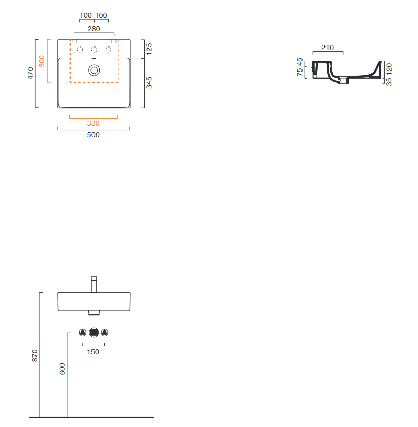Wszystkie umywalki można zamontować na trzy różne sposoby: podwieszane, na blacie i na meblu oraz można je zintegrować z określonymi wieszakami na ręczniki.