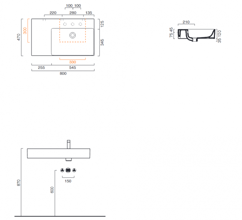 Wszystkie umywalki można zamontować na trzy różne sposoby: podwieszane, na blacie i na meblu oraz można je zintegrować z określonymi wieszakami na ręczniki.