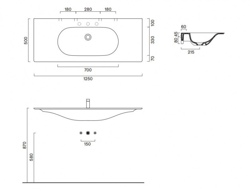 Catalano Sfera 125 umywalka z blatem ceramicznym