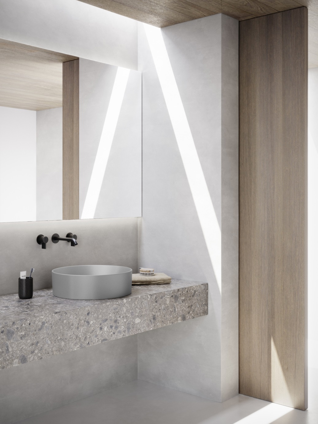 Kolekcja umywalek Zero dostępna jest w kilku wykończeniach inspirowanych pięknem natury. Od eleganckiego odcienia beżu po delikatność bieli, od jadeitowej zieleni po głębię czerni, kolory te przywołują poczucie spokoju i prostoty, harmonijnie komponując się z każdym typem wystroju wnętrza. Naturalne kolory dobrze komponują się z różnorodnymi materiałami, takimi jak drewno, kamień i metal, zapewniając nieograniczone możliwości kombinacji.